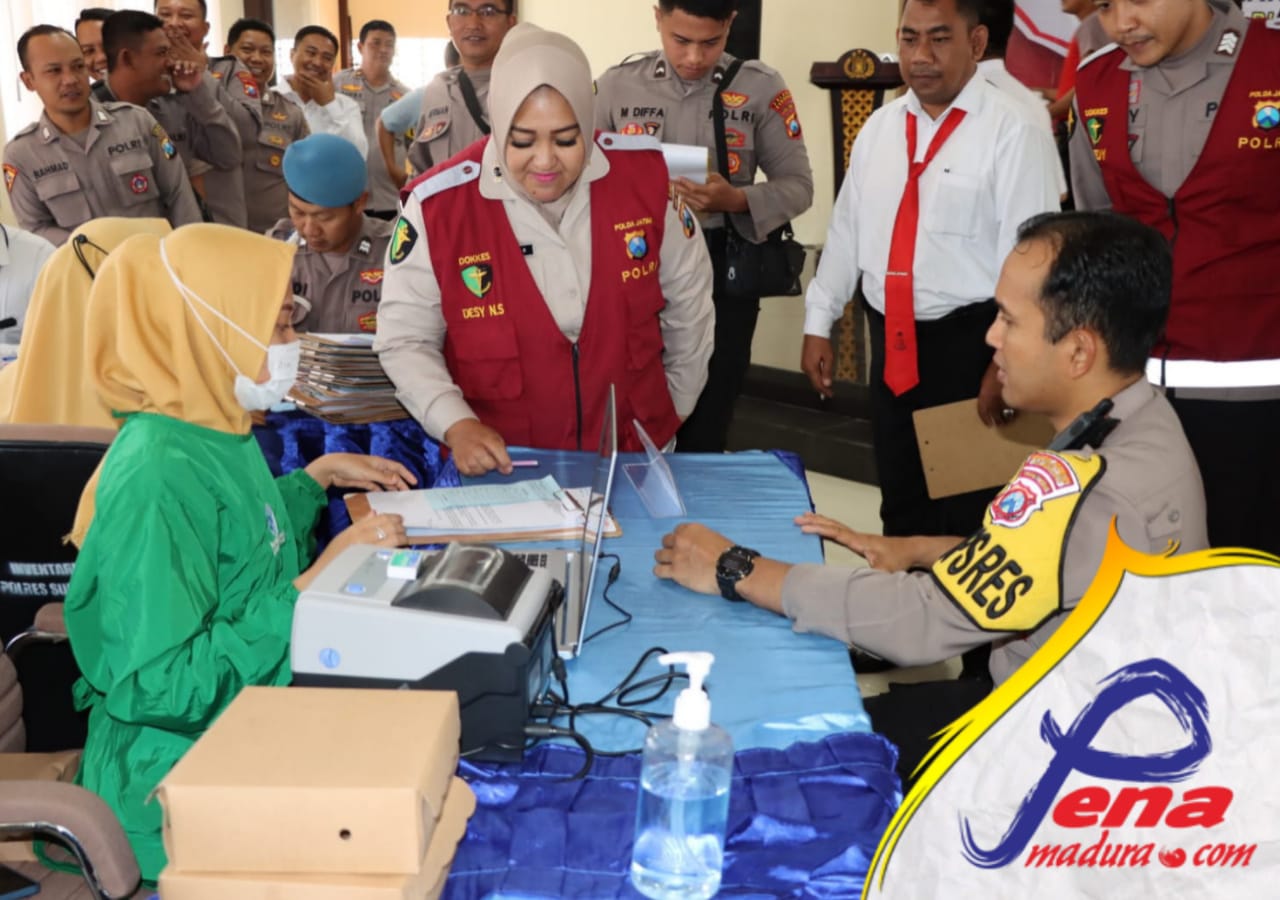 Pena Madura, Sumenep 17 Juli 2023 – Polres Sumenep Madura Jawa Timur Gelar Pemeriksaan Kesehatan Berkala anggota Polri dan PNS bekerja sama dengan Biddokes Polda Jatim serta Labolatorium Klinik Fortuna Bangkalan. Bertempat di Gedung Sanika Satyawada Polres Sumenep. Senin (17/7/2023)