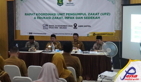Pena Madura, Sumenep, 24 November 2025 – Badan Amil Zakat Nasional (Baznas) Kabupaten Sumenep menggelar rapat koordinasi (Rakor) bersama seluruh Unit Pengumpul Zakat (UPZ) dari OPD, Puskesmas, Kecamatan, serta para pengawas jenjang SD dan SMP. Pertemuan ini menjadi momentum penguatan sinergi dalam upaya optimalisasi penghimpunan dan pengelolaan zakat, infak, dan sedekah (ZIS) di tingkat daerah.