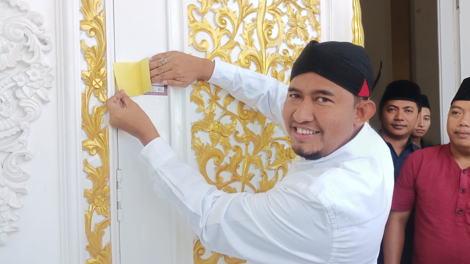 Bupati Sumenep, Achmad Fauzi saat menempel stiker coklit didepan pintu rumahnya