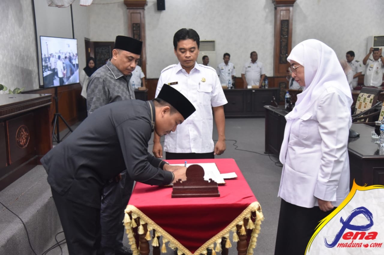 Wabup Sumenep, Dewi Khalifah Bersama Pimpinan DPRD Kabupaten Sumenep Tanda Tangani Nota Rancangan perda RPJPD Sumenep 2025-20245
