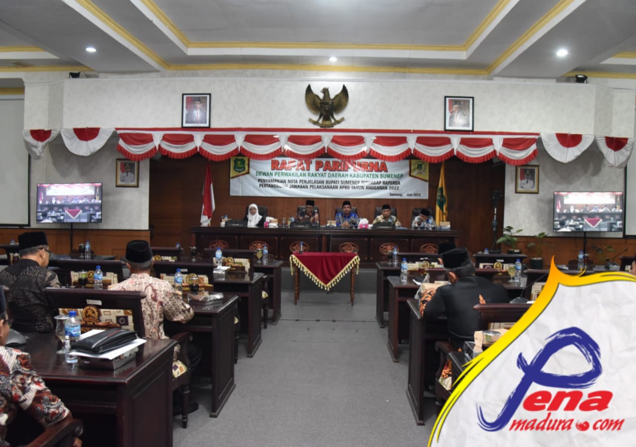 Pena Madura, Sumenep 08 Juni 2023 – Dewan Perwakilan Rakyat Daerah (DPRD) Sumenep, Madura, Jawa Timur, menggelar Gelar Sidang Penyampaian Nota Penjelasan Bupati Terhadap Pertanggungjawaban Pelaksanaan APBD 2022, Kamis 08 Juni 2023.