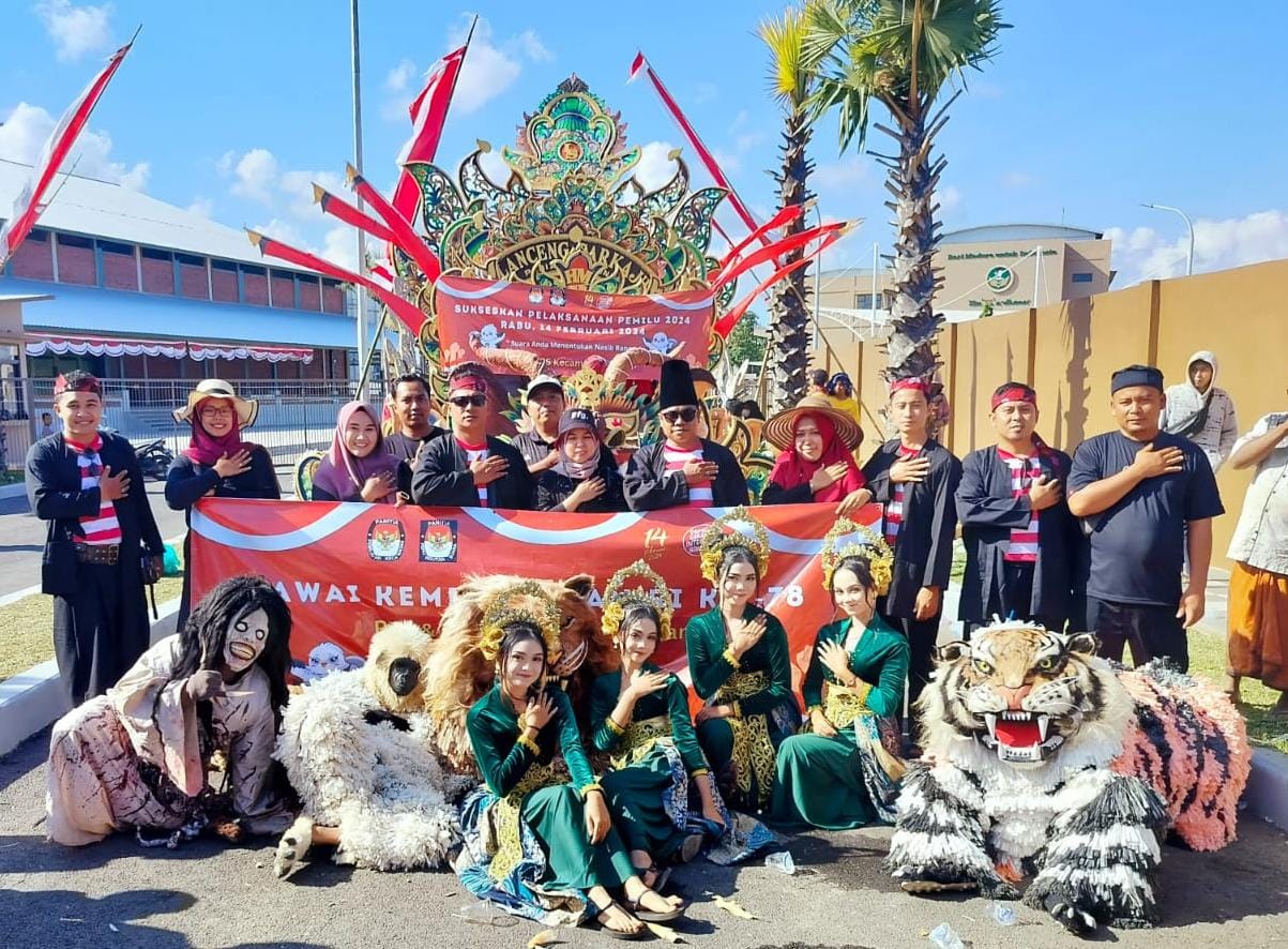 Sambil menggunakan pakaian Sakera khas Madura, para penyelenggara pemilu tersebut tak lupa membentangkan spanduk ajakan kepada masyarakat untuk menyukseskan pelaksanaan pemilu, yang akan digelar Rabu, 14 Februari 2024.