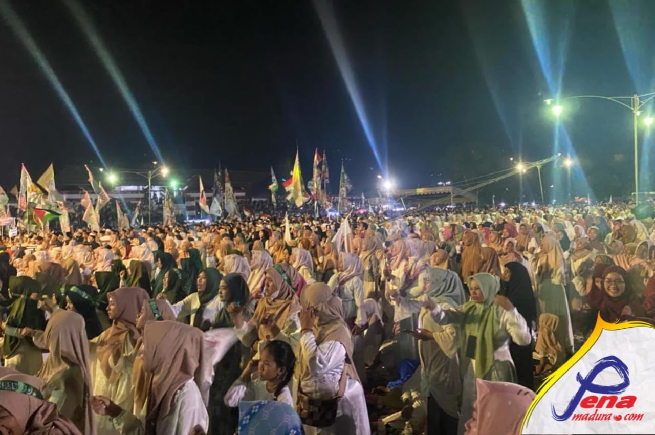 Pena Madura, Regional, 18 November 2023 – Puluhan ribu warga memadati GOR Ahmad Yani Sumenep, Madura, Jawa Timur. Mereka melakukan Istighosah bersama Menteri Koordinator Politik dan Keamanan Republik Indonesia (Menkopolhukam) Mahfud MD.