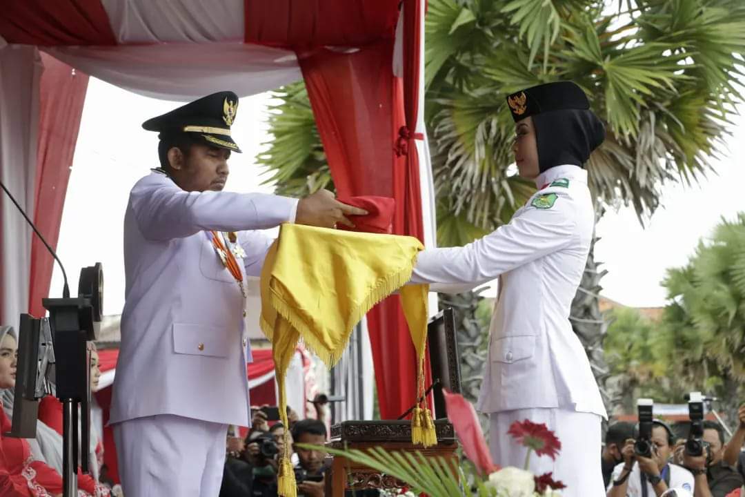 Ketua DPRD Kabupaten Sumenep Hamid Ali Munirmembacakan teks Proklamasi. Selanjutnya Bupati Fauzi menyerahkan bendera merah putih kepada Pasukan Pengibar Bendera Pusaka (Paskibraka) oleh Bupati untuk dilakukan pengibaran.