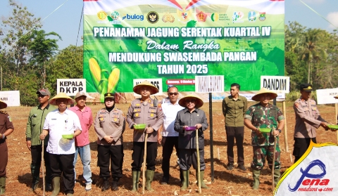 Pena Madura, Sumenep, 8 Oktober 2025 – Kapolres Sumenep AKBP Rivanda, S.I.K bersama Forpimda Kabupaten Sumenep gelar kegiatan Penanaman Jagung Serentak Kuartal IV dalam rangka mendukung Program Swasembada Pangan Tahun 2025, yang dilaksankan di Desa Ellak Daya, Kecamatan Lenteng, Kabupaten Sumenep, Rabu (8/10/2025).
