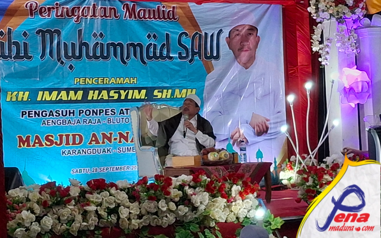 Penamadura.com, Sumenep 28 September 2024 – Masjid Annawawi Karangduak memperingati Maulid Nabi Muhammad saw yang menghadirkan penceramah KH. Imam Hasyim, Pengasuh Pondok Pesntren Attaufiqiyah Aengbaja Raja Bluto Sumenep.