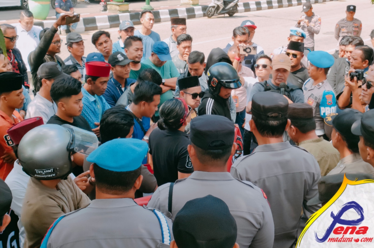 Penamadura.com, Sumenep 08 Juli 2024 – Ketua Komisi III DPRD Kabupaten Sumenep Dul Siam menemui puluhan massa aksi massa aksi yang mengatasnamakan Gerakan Aksi Mahasiswa Sumenep (Gamas), mereka berunjukrasa di depan gedung DPRD mempersoalkan tanah terminal Arya Wiraraja yang hendak dibangun karena diduga menyerobot lahan warga.