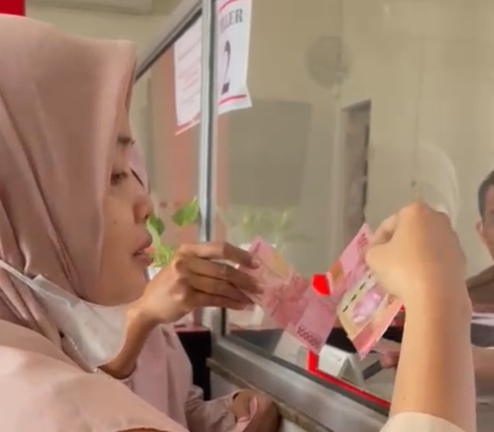 “sebenarnya waktu saya pegang uang itu sudah agak curiga karena kan lain dari uang yang asli tapi ya namanya enggak teliti banget ya gitu,” katanya.