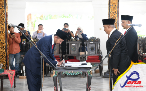 Penamadura.com, Sumenep 14 Januari 2026 – Bupati Sumenep Achmad Fauzi Wongsojudo melakukan mutasi dan pelantikan terhadap sembilan pejabat pimpinan organisasi perangkat daerah (OPD) di lingkungan Pemerintah Kabupaten Sumenep, Rabu (14/01/2026), bertempat di Pendopo Keraton Sumenep.