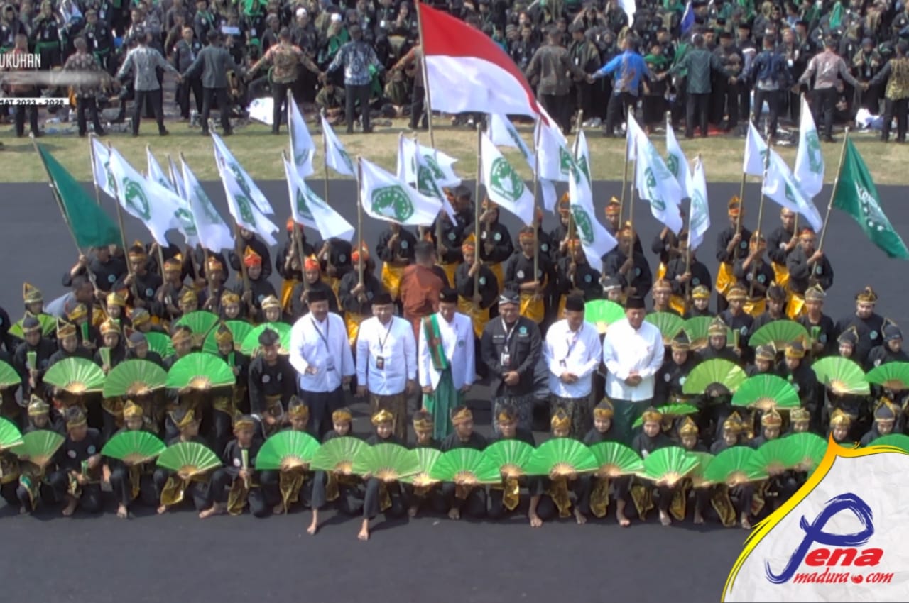 Pena Madura, Nasional, 22 Oktober 2023 – Pimpinan Pusat Pencak Silat Nahdlatul Ulama (PSNU) Pagar Nusa Masa Khidmat 2023-2028 resmi dilantik Ketua Umum PBNU KH Yahya Cholil Staquf. Pelantikan ini disaksikan langsung oleh Presiden Joko Widodo. Proses pelantikan dilaksanakan di Lapangan Marinir Bumi Moro, Surabaya, Jawa Timur, Ahad (22/10/2023) setelah apel Hari Santri di Tugu Pahlawan.