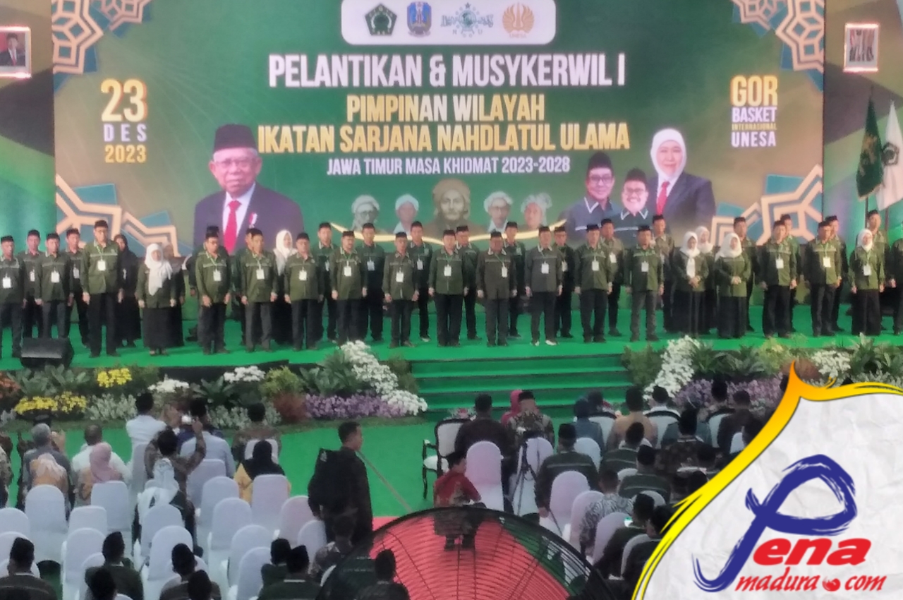 Penamadura.com, Surabaya 23 Desember 2023 – Pimpinan Wilayah Ikatan Sarjana Nahdlatul Ulama (PW 8SNU) Jawa Timur, masa khidmat 2023-2028, resmi dilantik. Pelantikan dihadiri oleh wakil Presiden RI, KH. Ma’ruf Amin.