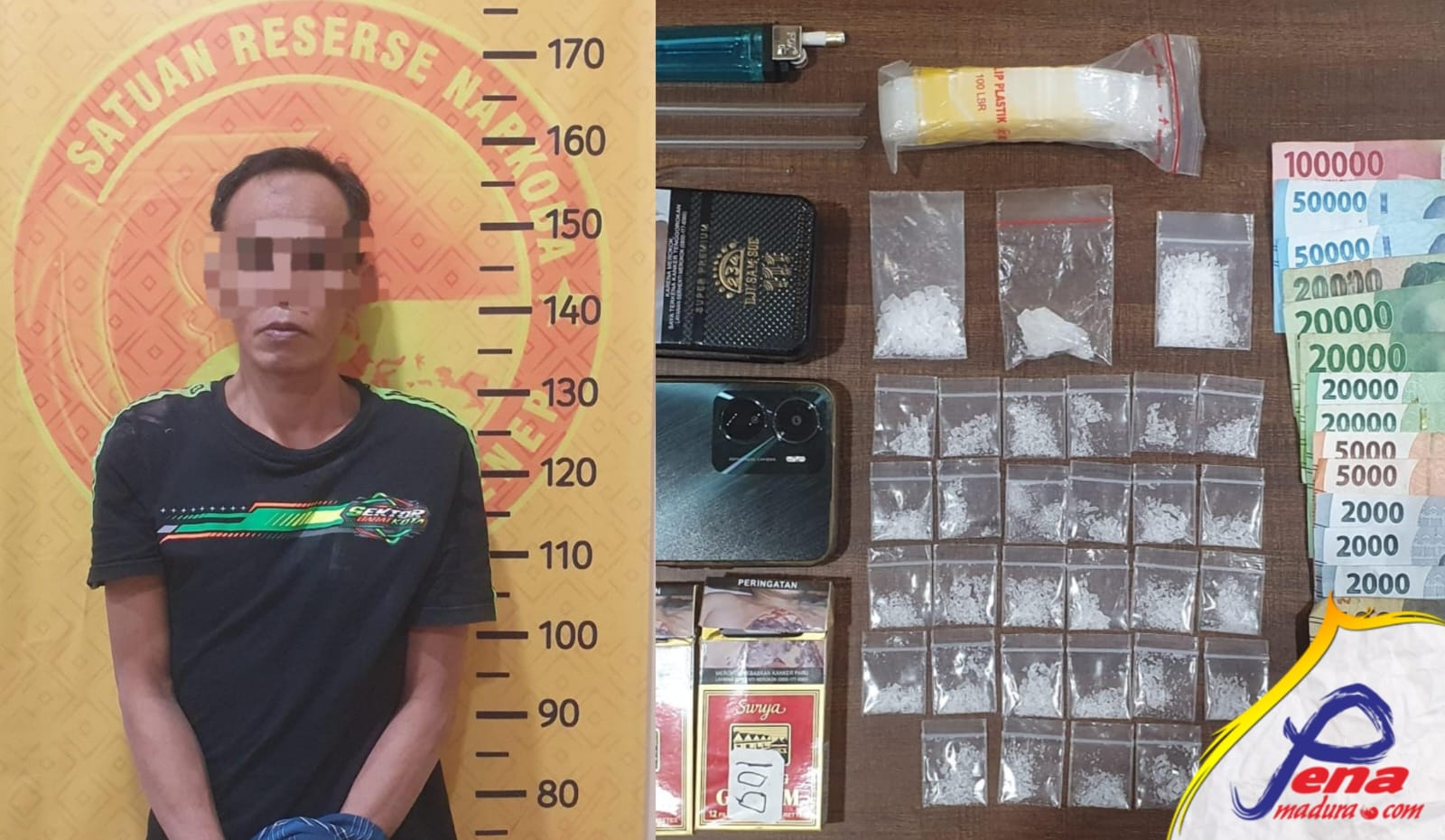 Dalam operasi yang dipimpin langsung oleh personel Satresnarkoba tersebut, seorang pria berinisial MZ (49), warga Dusun Nong Malang, berhasil diamankan di kediamannya. Dari tangan terduga pelaku, petugas berhasil menyita sebanyak 31 poket sabu dengan total berat 12,01 gram, yang dikemas dalam plastik klip dan disimpan di dalam bungkus rokok serta kotak seng.