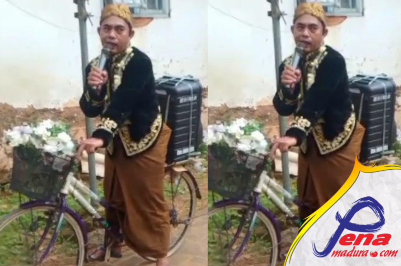 Aksi nyentrik itu dilakukan Amir, warga Manding Laok dengan menggunakan gaun pengantin laki-laki menggunakan blankon, baju pengantin, sarung dan sebilah keris di pinggangnya, menaiki sepeda ontel dengan sebuah sond aktif dibonceng dibelakang sebagai pengeras suara sambil mengajak warga untuk berpartisipasi mensukseskan pemilu 2024.