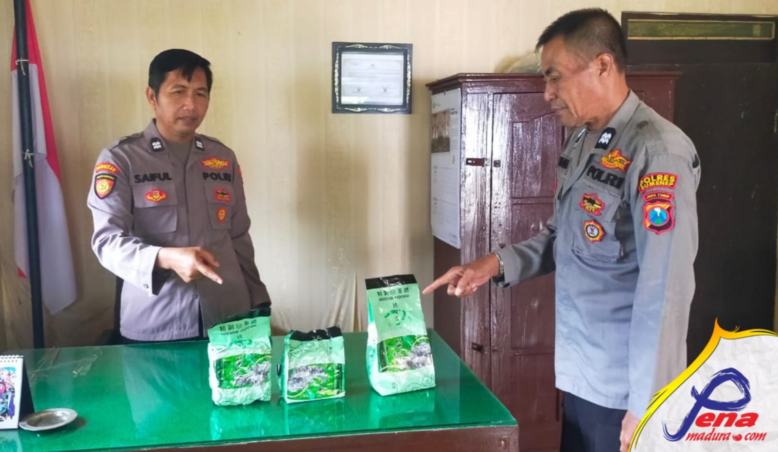 Kapolsek Masalembu, AKP, Saeful menyampaikan apresiasi atas inisiatif dan kesadaran warga yang secara sukarela menyerahkan barang temuan yang diduga mengandung zat terlarang tersebut.