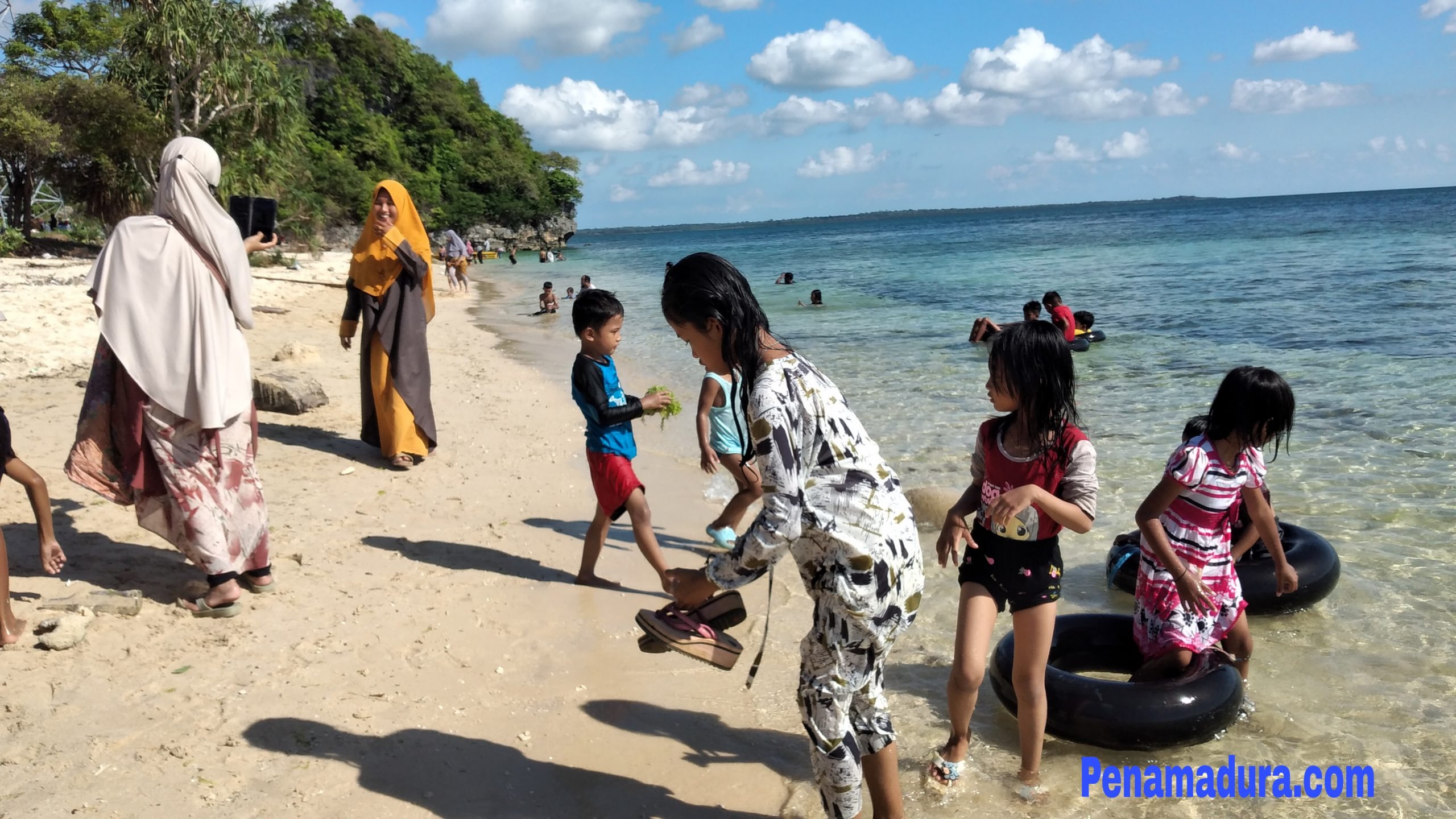 Setiap hari libur pantai pasir putih selalu di padati pengunjung, hamparan pasir putih dan air lautnya yang bening menjadi daya tarik tersendiri bagi para pengunjung yang ingin menghabiskan hari libur lebaran Idul Fitri 1444 H di pulau yang terletak di sebelah timur daratan Kabupaten Sumenep tersebut.